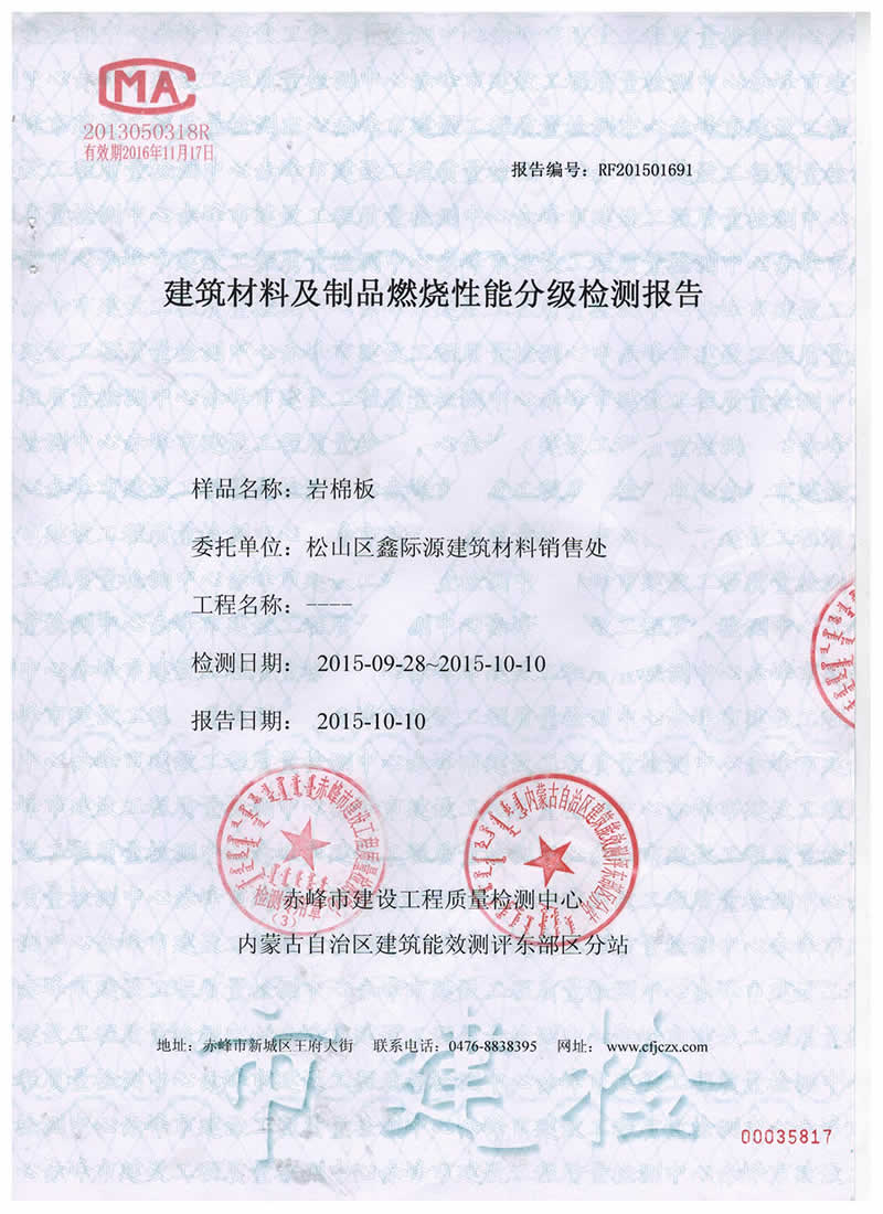 >>>建筑材料及制品燃燒性能分級(jí)檢測(cè)報(bào)告