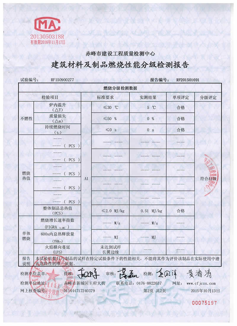 >>>建筑材料及制品燃燒性能分級(jí)檢測(cè)報(bào)告